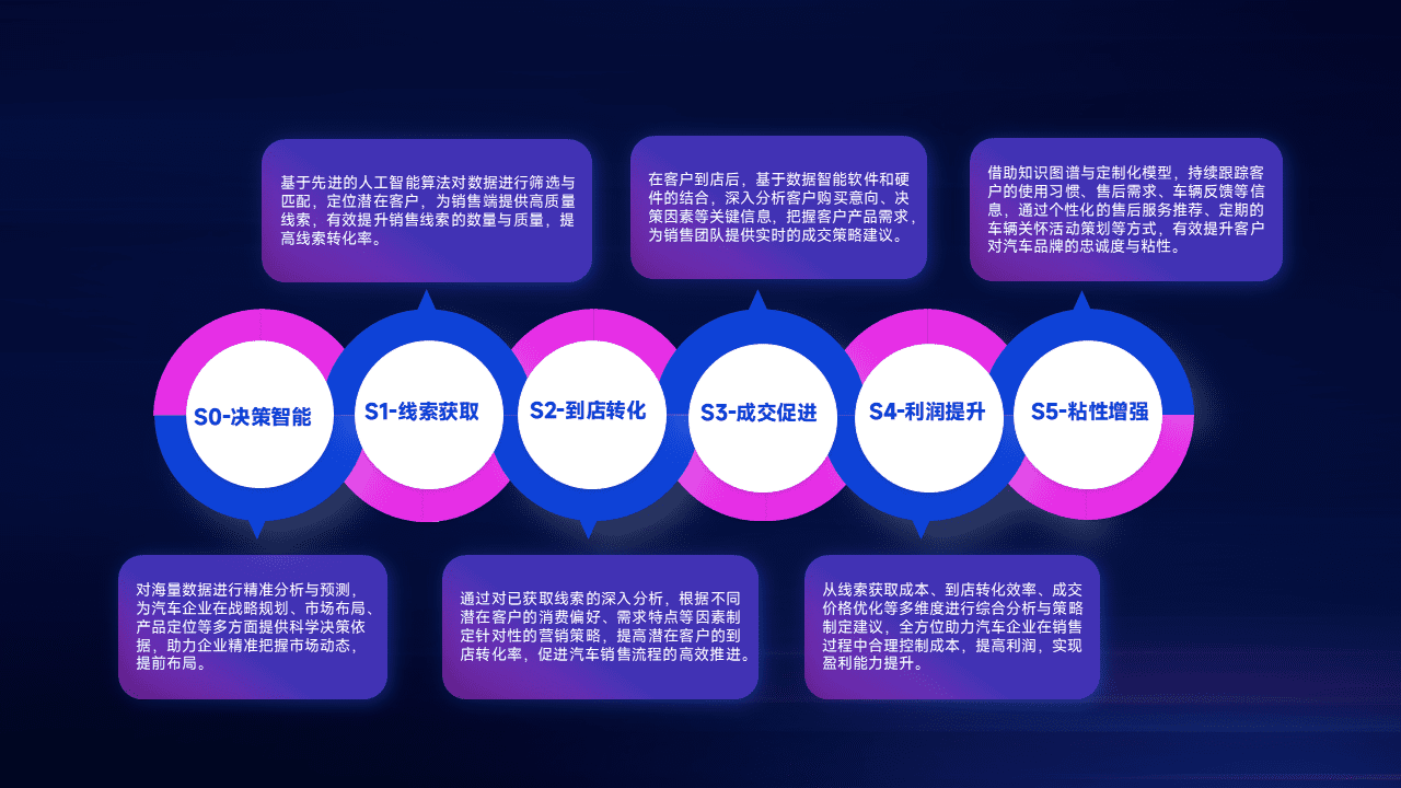 通过拓宽潜在客户来源、、、、优化线索分配并提高到店转化率,,,,以增强销售效率。。同时,,,,利用线索数据不断优化分析模型,,有效提升转化率,,,,扩大营销影响力。。